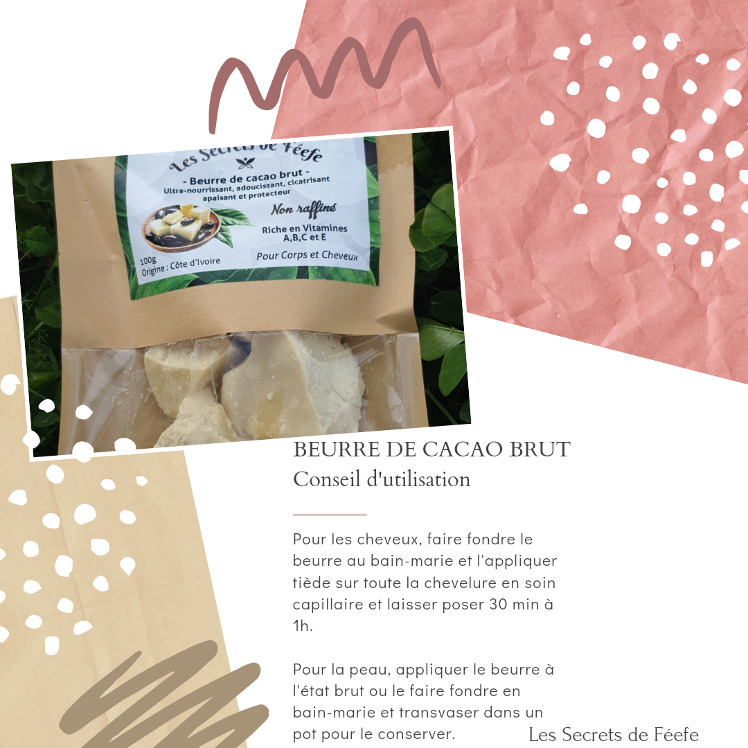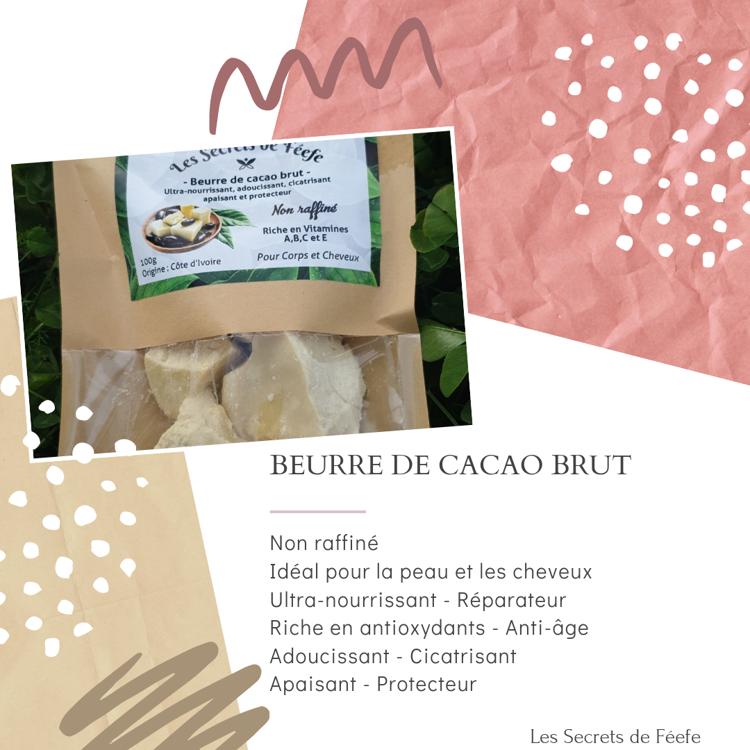 Beurre de cacao brut non raffiné. Idéal pour la peau et les cheveux, ultra-nourrissant, réparateur et riches en antioxydants.