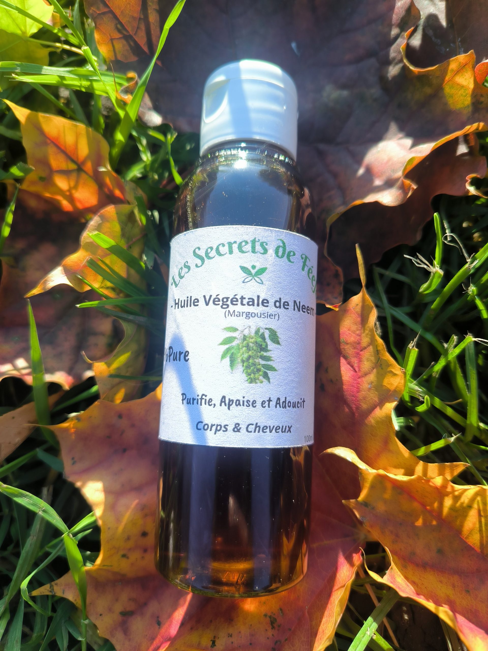 L’huile de neem est réputée pour ses propriétés antibactériennes, antifongiques, insectifuges et apaisantes, utiles en cosmétique et jardinage. Elle est extraite des graines du margousier (Azadirachta indica), un arbre originaire d’Inde.