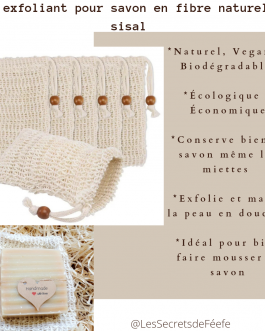 Le sisal est une fibre naturelle qui possède également des propriétés exfoliantes douces. En utilisant ce sac pour ranger vos savons solides, vous pouvez profiter d’un léger massage exfoliant pendant l’utilisation, stimulant ainsi la circulation sanguine et la revitalisation de votre peau.