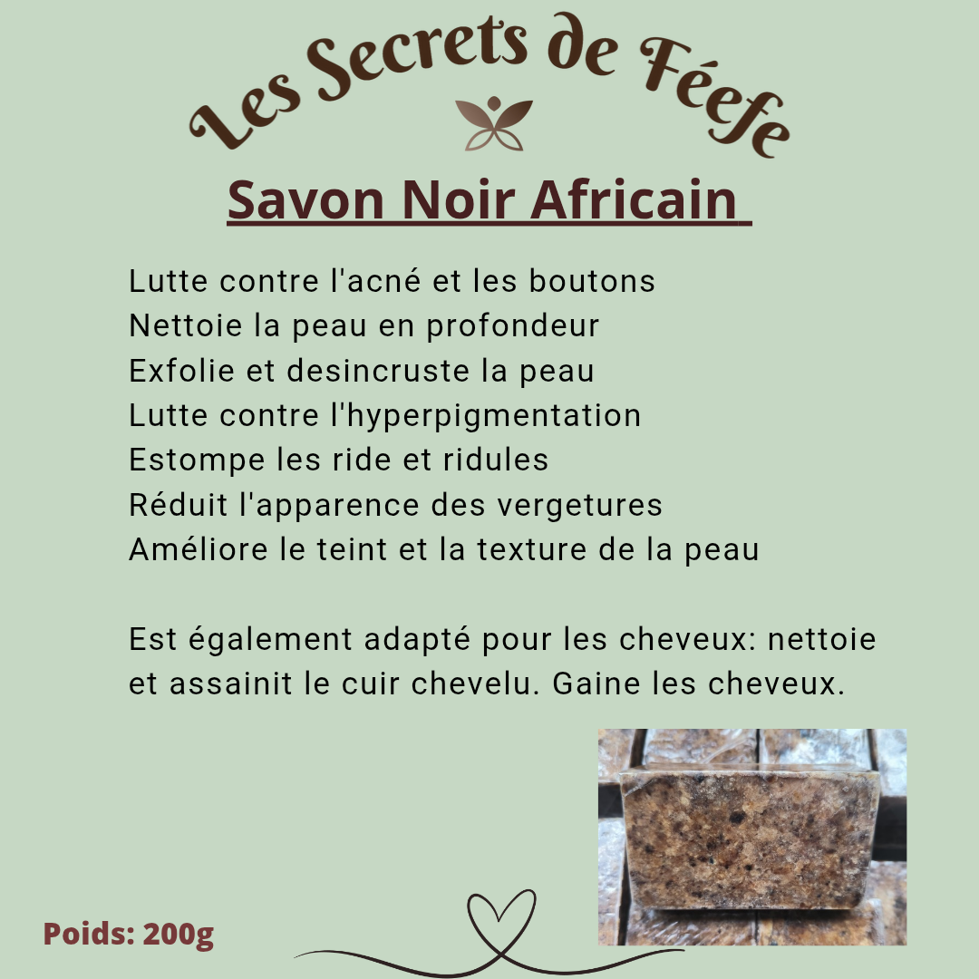 Notre savon noir est un produit de beauté africain traditionnel, fabriqué à partir d’ingrédients naturels de qualité supérieure, tels que des cendres de plantes, de la poudre de cacao, de l’huile de noix de coco et de l’huile de palme. Ce savon noir est célèbre pour ses propriétés nettoyantes, exfoliantes et hydratantes, qui aident à éliminer les impuretés de la peau et à améliorer son apparence.